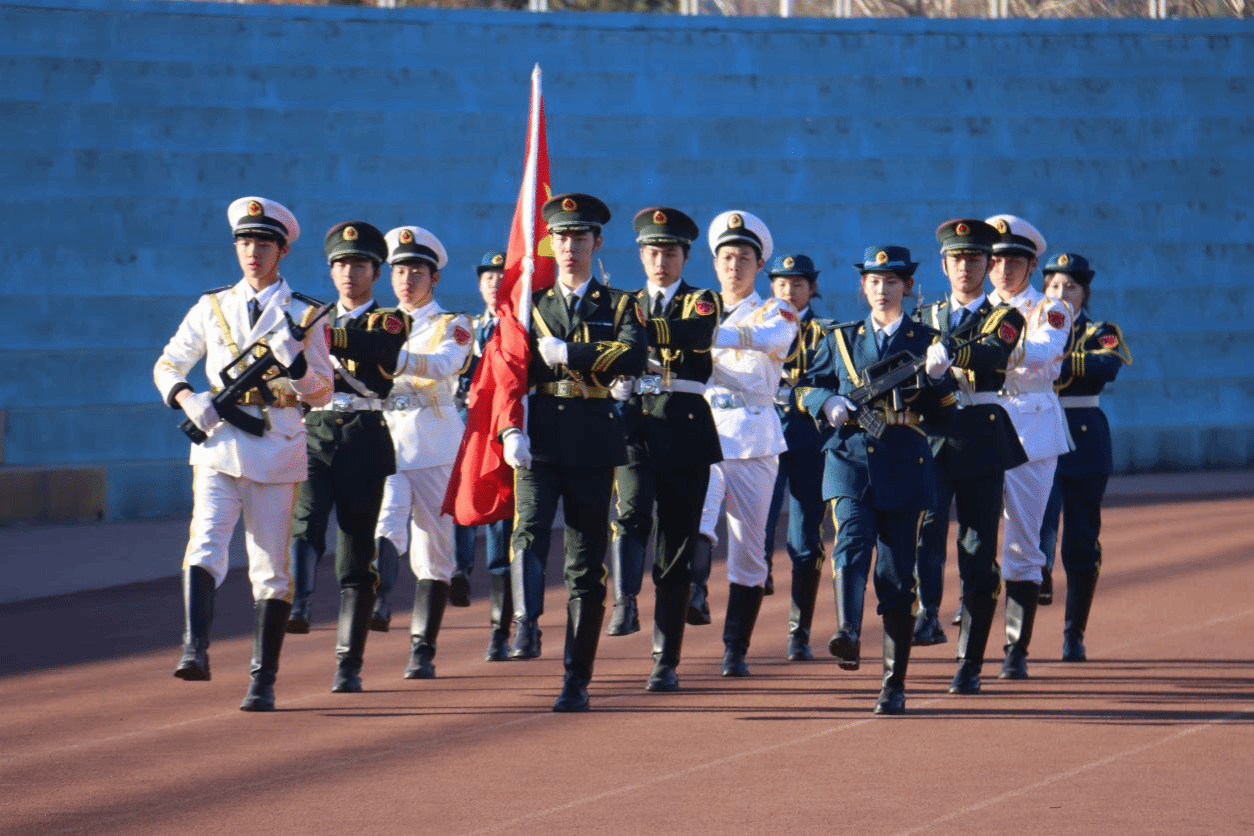 迎着晨光,国旗护卫队迈着整齐划一、铿锵有力的步伐,庄严护送五星红旗入场。他们挺拔的身姿,是忠诚与纪律的写照,更是守护国旗、捍卫国家安全的坚定宣言。
